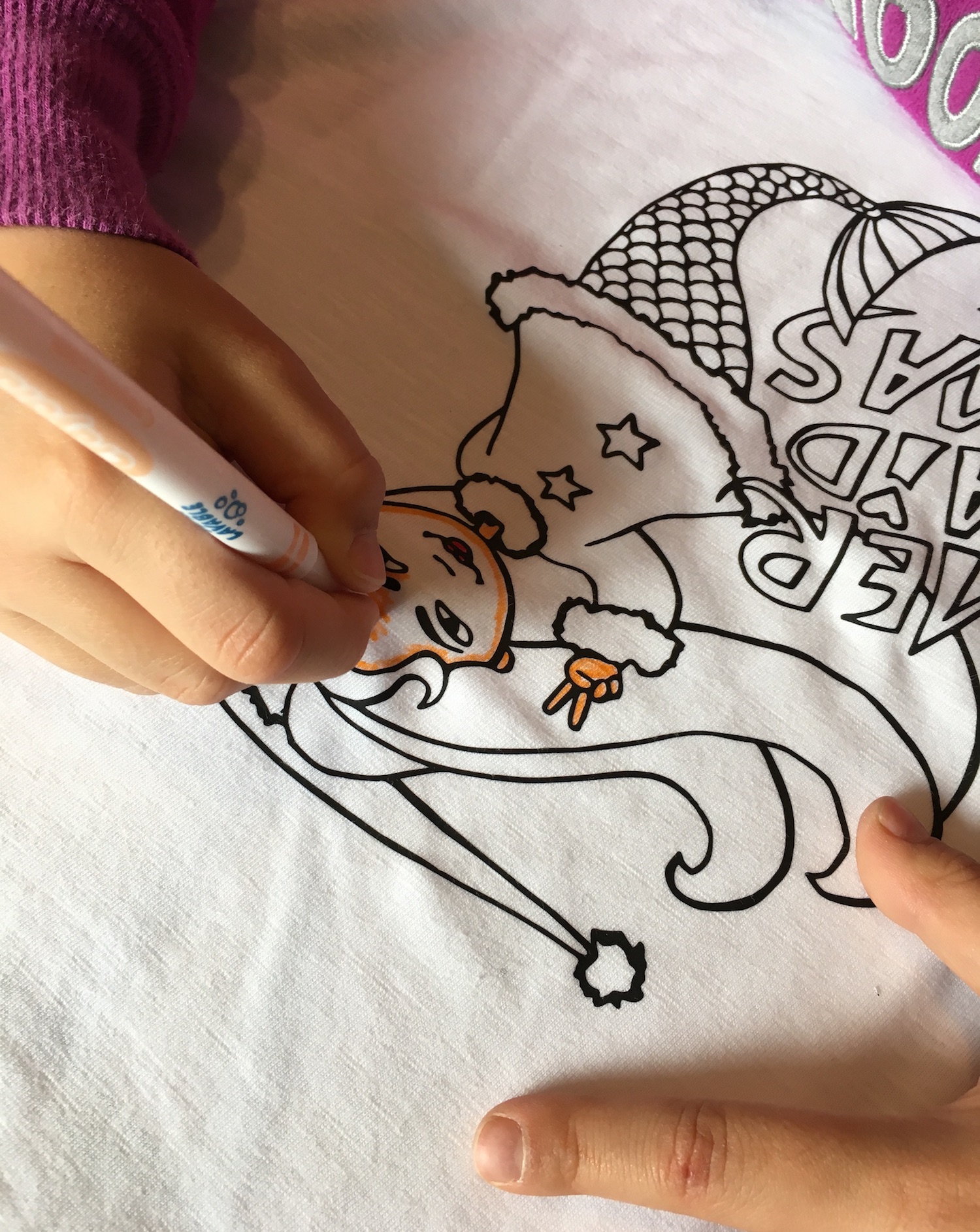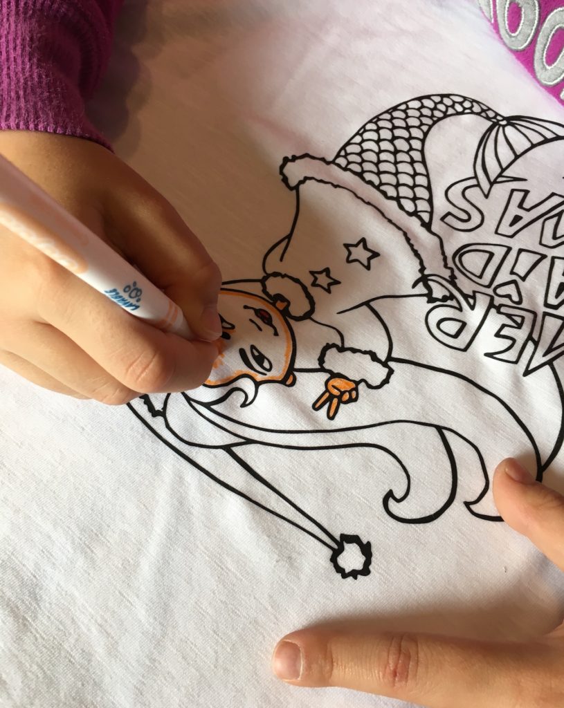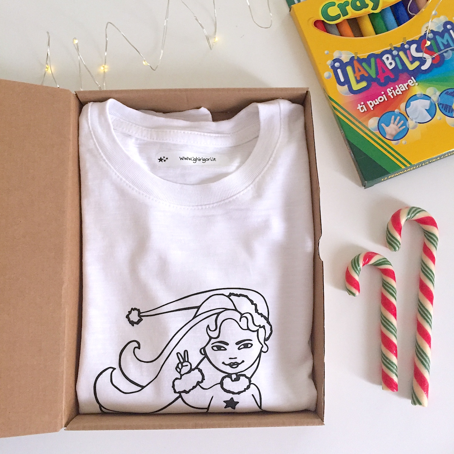 ISTRUZIONI: prima di colorare la maglietta mettete un supporto tra le due parti di tessuto in modo che il colore non passi anche sul retro e quando avrete completato la vostra interpretazione natalizia, indossatela con fierezza in qualsiasi giorno dell’anno, farete parte anche voi di questo perfetto Crazy Christmas.