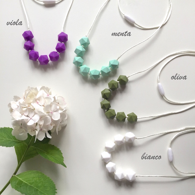 Come vi accennavo quando vi ho presentato il blog, dopo essere diventata MammaBis mi sono trovata con una pargoletta che non mi permetteva di indossare nessun tipo di bijoux e si aggrappava ai miei capelli. A metà tra la disperazione e la rassegnazione una notte, navigando in cerca di una soluzione, ho trovato un’azienda americana che produceva le collane massaggiagengive: una vera scoperta!