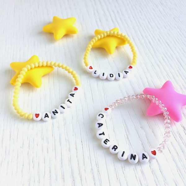 Pratico da infilare grazie al suo comodo elastico, è un piccolo accessorio per i più piccoli che gli permette di avere un braccialettino su misura personalizzato con il loro nome e quindi unico.