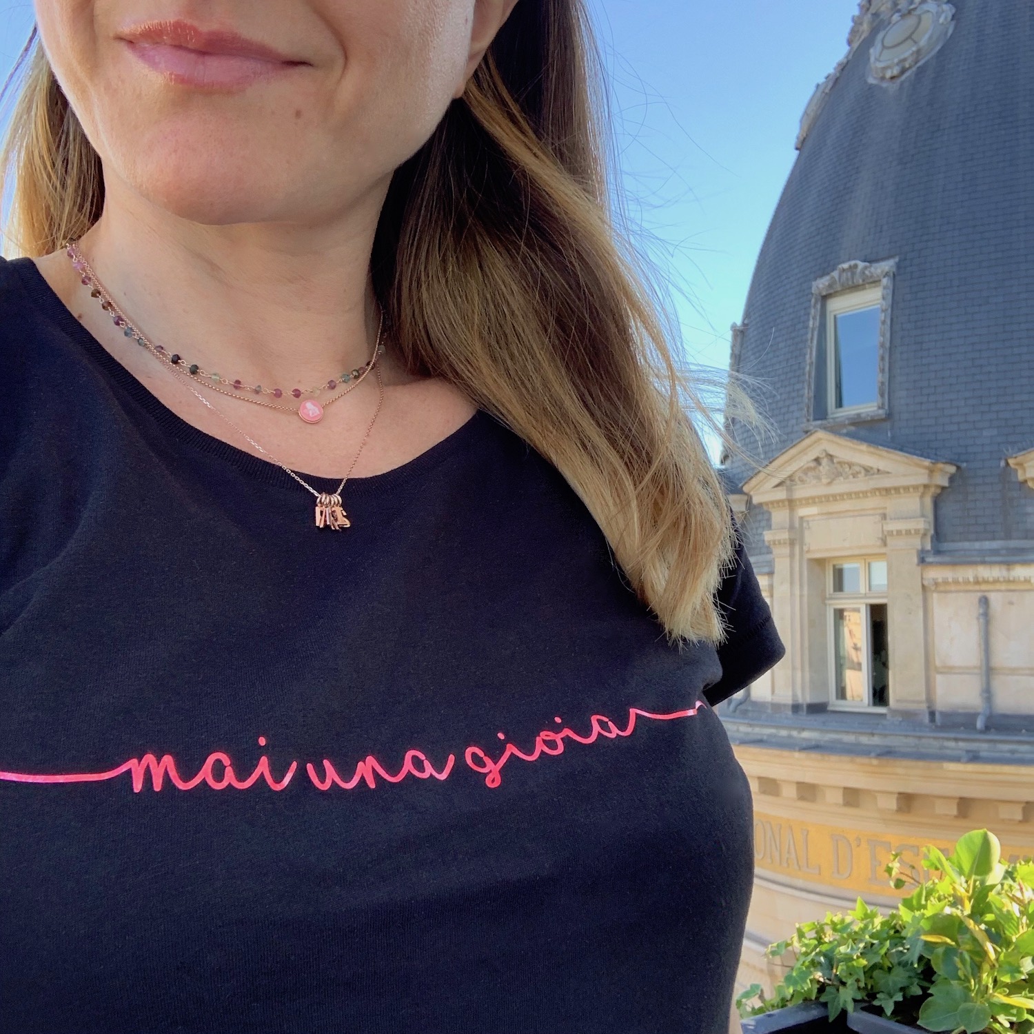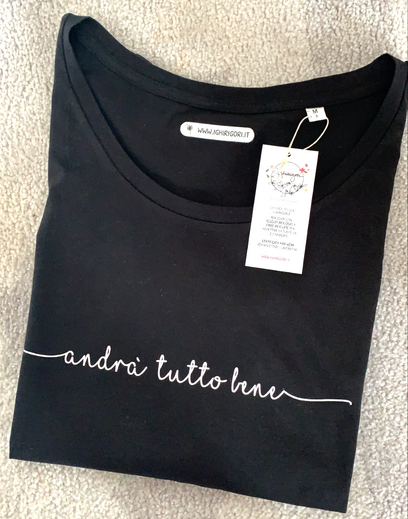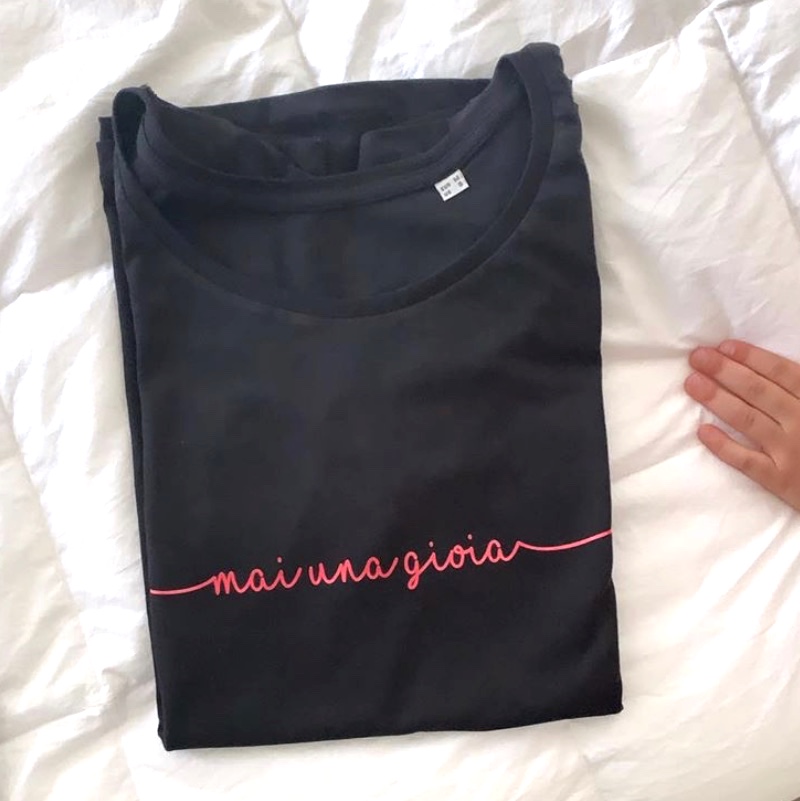 T-shirt donna colore nero in cotone bio con scritta personalizzabile