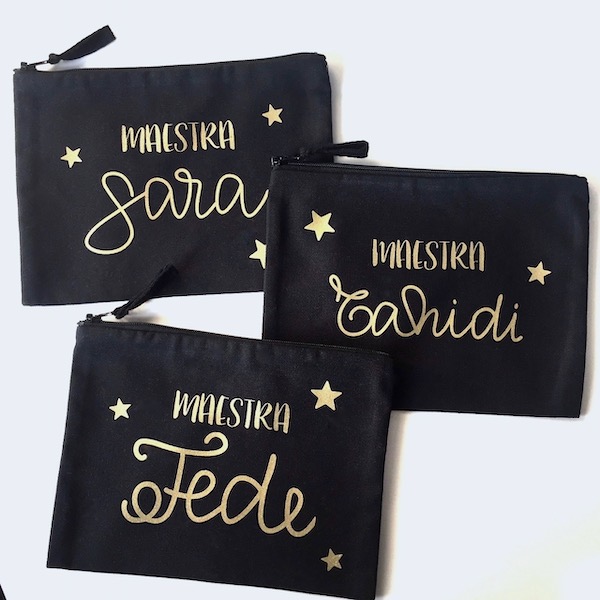 La composizione con il nome/le scritte viene fatta a mano per ogni astuccio quindi ogni astuccio sarà diverso.