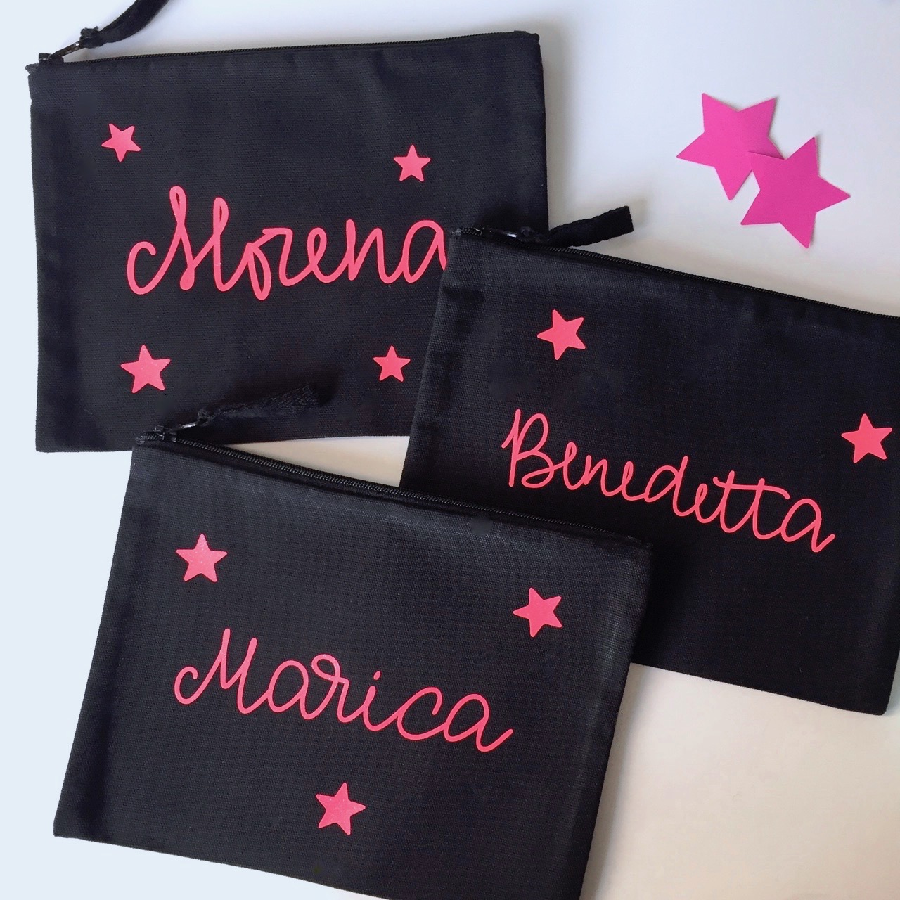 Astuccio/pochette con base nera con nome o scritta personalizzata color glitter.